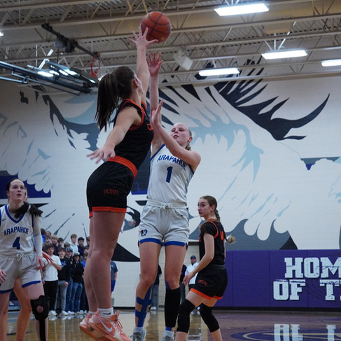 Saywer Shafer led the team in scoring with 25 points and had five three-pointers. Suttyn Shafer had 15 points, and Clara Hilker scored 11. Arapahoe will play #1 seeded Alma on Thursday at 7:30 P.M. CT at Southwest.